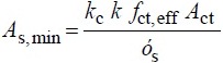 2) Eurokoden gäller för förtillverkade element i lika hög grad som för platsgjutna konstruktioner. För förtillverkade element som kan utsättas för sprickbildning på grund av tvång gäller således samma krav på minimiarmering för sprickbreddsbegränsning. Å andra sidan kan ju förtillverkade element i allmänhet vara mindre utsatta för sådan tvångsinverkan. Det är konstruktörens ansvar att göra den bedömningen från fall till fall; eurokoden säger ingenting särskilt om detta. Sprickbreddskontroll med hänsyn till krympning är aktuell om elementet kan utsättas för tvång på grund av förhindrade krymprörelser, annars inte.